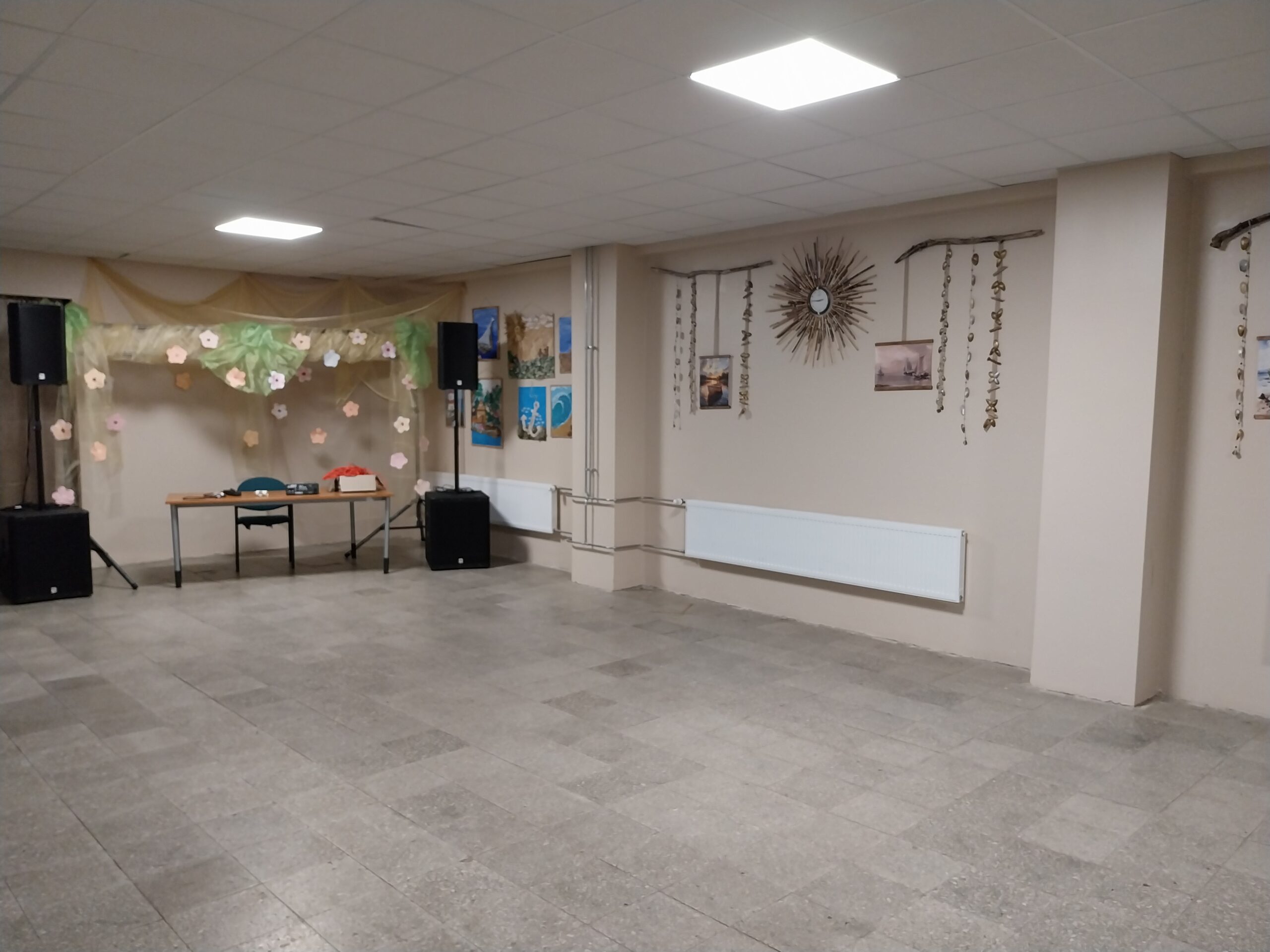 Kõik Kallaste kultuuriüritused peeti rahvamajas, kuid 2006. aasta tulekahju hävitas selle hoone täielikult. Tasapisi hakati üritusteks kasutama Kallaste Keskkooli saali ja Keskväljak 4 endise söökla saali. Pärast Kallaste kooli sulgemist 2021. aastal on see saal ainuke ürituste ja koosolekute koht. Renoveeritud saal sobib suurepäraselt lasteürituste ja diskode korraldamiseks, aga ka puhke- ja tantsuõhtuteks täiskasvanutele. Suurte tänavapidustuste ajal toimuvad saalis õpitoad.