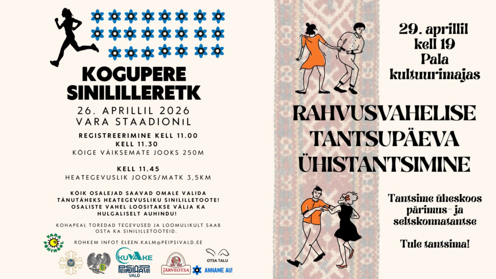 KUVAKE kutsub aktiivselt liikuma 26. aprillil kell 11 Vara staadionile Sinililleretkele ja 29. aprillil kell 19 Pala kultuurimajja rahvusvahelise tantsupäeva ühistantsimisele.