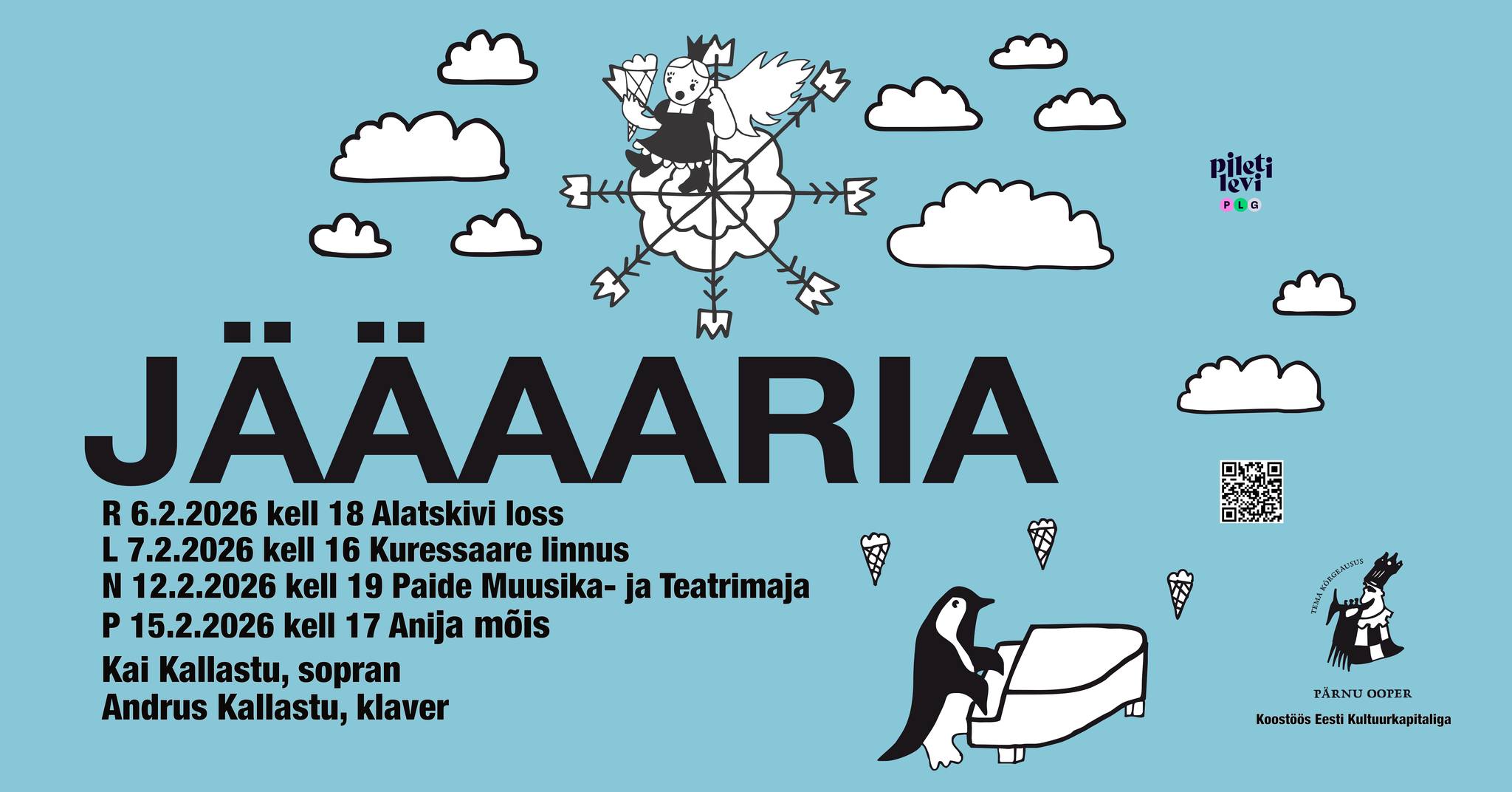 Pilet 15 € eelmüügis Piletilevis: https://www.piletilevi.ee/piletid/BQAL5JCUAT/jaaaaria-kai-kallastu-sopran-andrus-kallastu-klaver