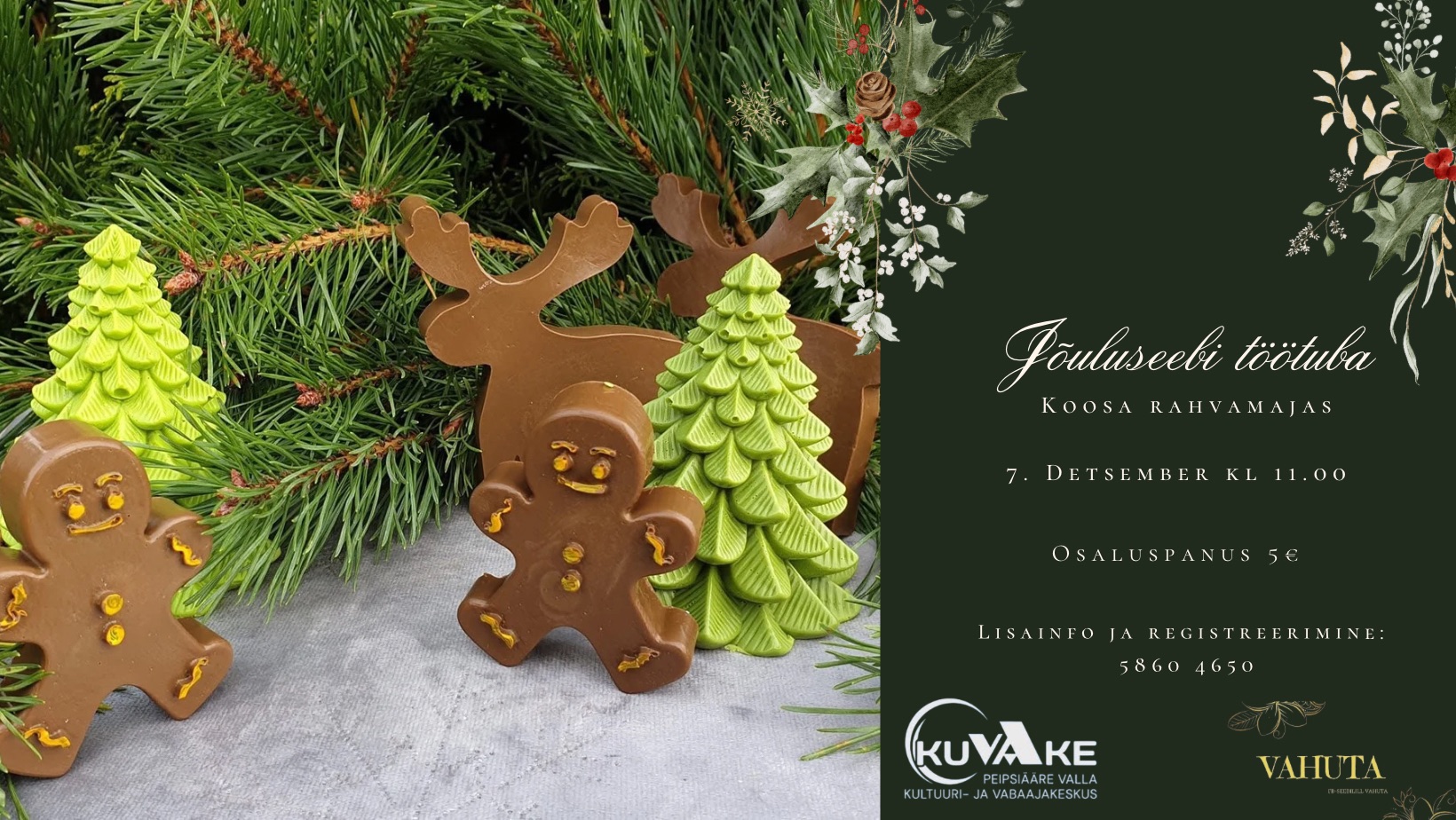 7. detsembril kell 11.00 II advendi töötuba Koosa rahvamajas. Jõuluseebi valmistamine.