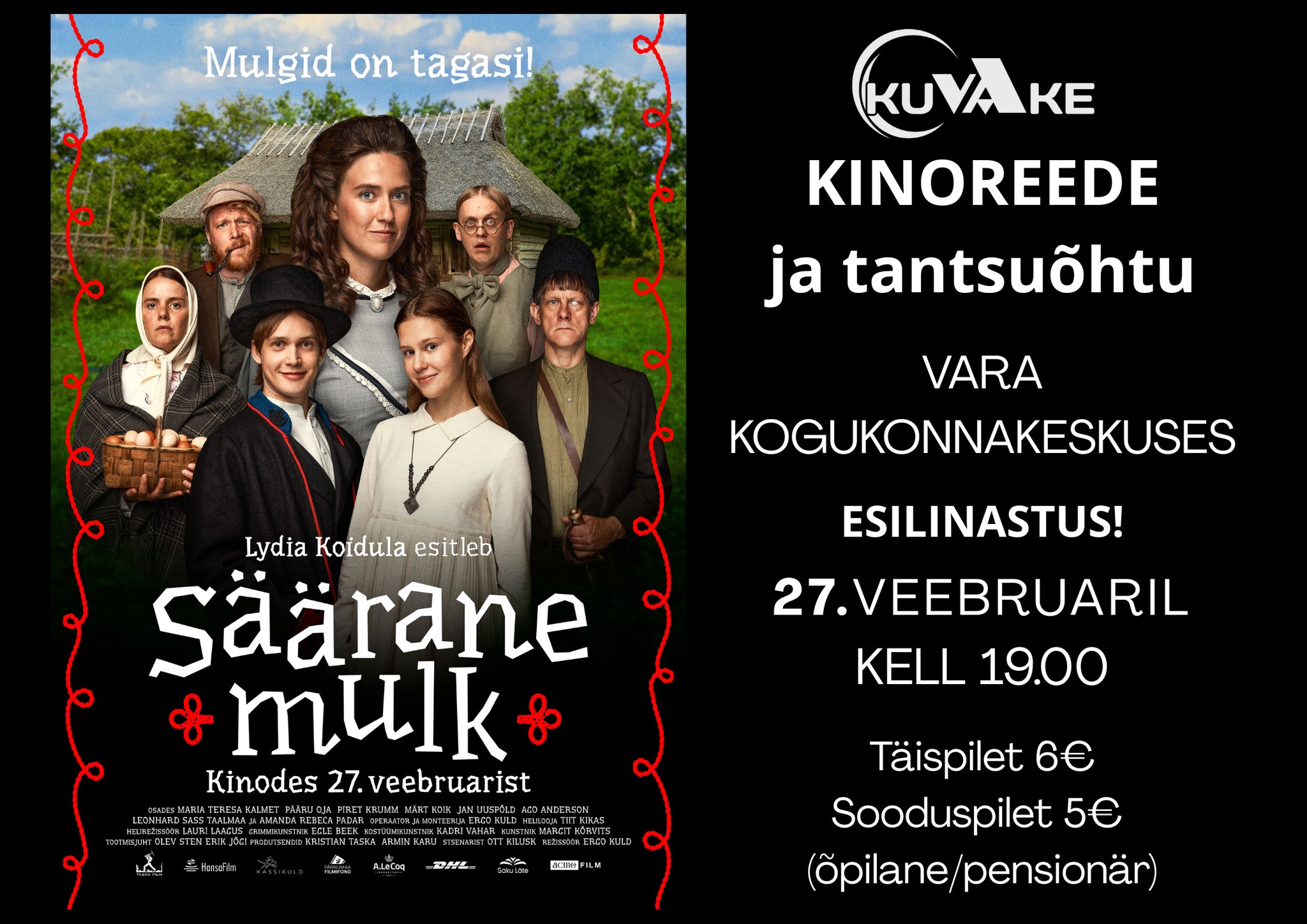 27. veebruaril kell 19.00 esilinastub Vara kogukonnakeskuses “Säärane mulk”. Pärast kino tantsuõhtu!