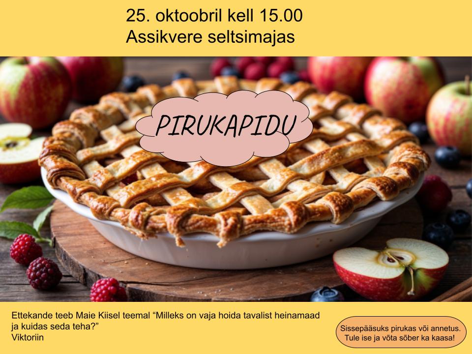 25. oktoobril kell 15 toimub Assikvere seltsimajas taas pirukapidu.